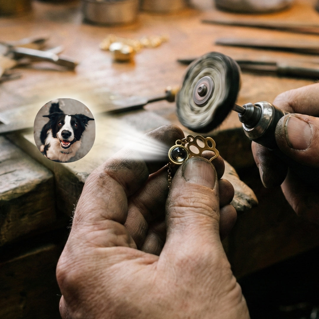 This necklace holds a photo inside — a memory that shines when light passes through. Keep your pet close, remember every moment, and carry their love with you every day.