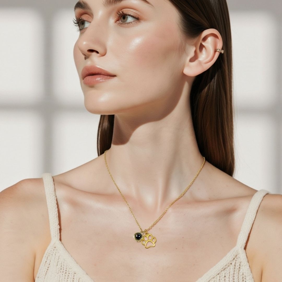 This necklace holds a tiny photo inside — a memory that shines when light passes through. Keep your pet close, remember every moment, and carry their love with you every day.